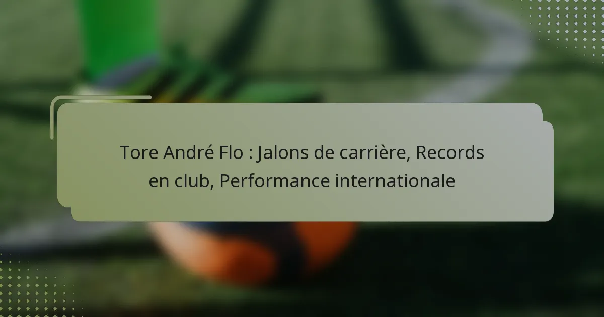 La carrière de Tore André Flo est marquée par des réalisations significatives, y compris ses débuts professionnels, des transferts majeurs et des performances notables. Son parcours à travers divers clubs et compétitions internationales met en avant son impact sur le football, en particulier en Norvège et au Royaume-Uni.